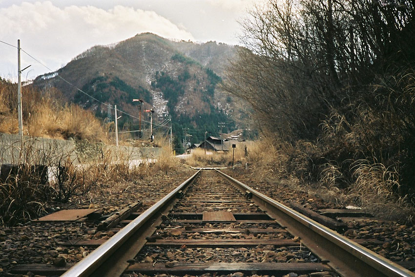 沢入を出発し、少し走ると町並みが現れ、この列車の終点である足尾に到着した。有名な銅山は何年も前に閉山されていたと聞いたが、まだ精錬所があるためか構内には貨車が何両も留置されていた。貨物列車はこの当時現役だったようだが、当時の自分は列車に乗ることに命を掛けていたため、乗れない貨物列車は度外視していたことが今でも悔やまれる。さてこの先の終着駅、間藤にはこの後やって来る列車に乗り換えればそのまま連れて行ってくれるのだが、間藤駅での折り返しが数分しかないため、終着駅の雰囲気を味わいたいがために、この足尾から歩いて早めに向かい、次の折り返し列車を待ち乗って帰る作戦だ。寂しい駅前を進行方向に進み、ミッちゃんとたわいもない会話をしながら小雪がちらつき始めた県道を北に向かって歩いた。