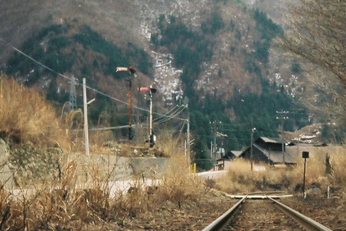 踏切から足尾方を向かってなんとなく撮影。当時は全く関心が無かったが、よく見ると腕木信号が写っている。