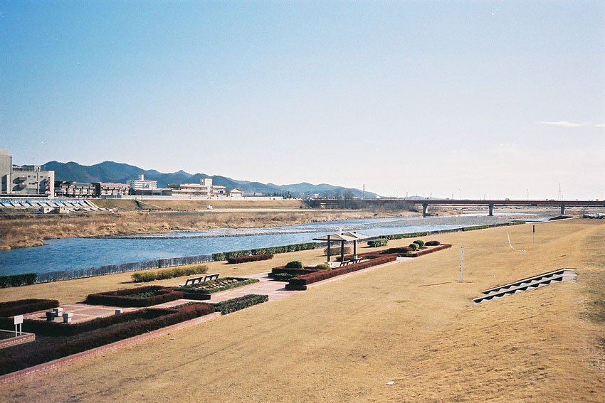 東武足利市駅と国鉄足利駅は渡良瀬川を挟んだ反対側。2人でテクテク川を渡る。