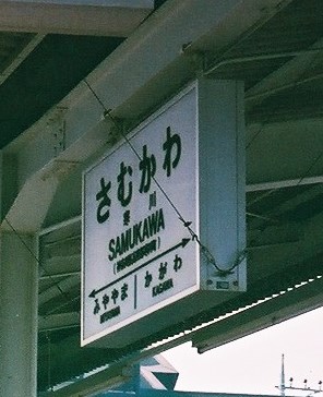 電化される前の相模線寒川駅。そうだ!! たびたび想い出写真館に登場してくれる友人T君と、西寒川支線の跡地巡りに行ったんだっけ! 西寒川支線が現役の頃は知らないが、廃止からしばらく経て、同じ県内に一日4往復の超閑散線があることを知って次第に興味を持ち、T君を誘って遺構を探しに行ったことを思いだした。駅名票から・・・