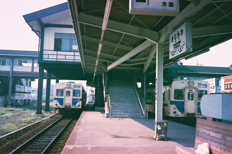 これを撮影した当時はいろいろと空想を交えて現役当時の駅構内の様子など想像をめぐらしたものだが、最近になって現役時代の映像画像を、簡単にネットやyoutubeなどで鑑賞できるようになり、当時の雰囲気がようやく掴めてきた。恐らくホーム長はせいぜい2両分。駅舎や側線などは無く、棒線に簡易なホームがあっただけのようだと知ることができた。