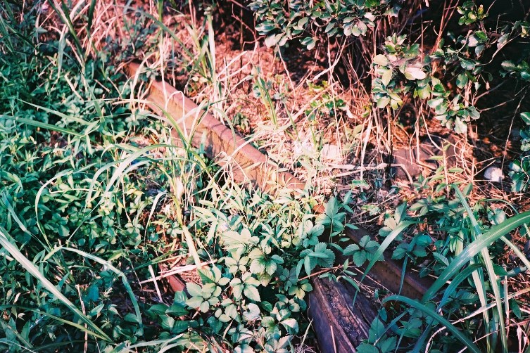 裏寂れた廃線跡、痕跡を辿りながらの散策を期待していたのだが、すぐに整備された遊歩道になっていた。廃止当時のままのものか、それとも敷設直されたのか、線路と枕木の軌道が、現役当時のまま緩やかな弧を描いて西寒川を目指していた。T君とくだらない話をしながらテクテクその線路の上を歩いていると、そのモニュメント的なものは数百mほどで途切れ、ようやく廃線らしい一条の砂利道になってきた。もう支線全体の半分以上進んでいると追われるが、ここにきて急に現役時代の遺構が目につくようになってきた。