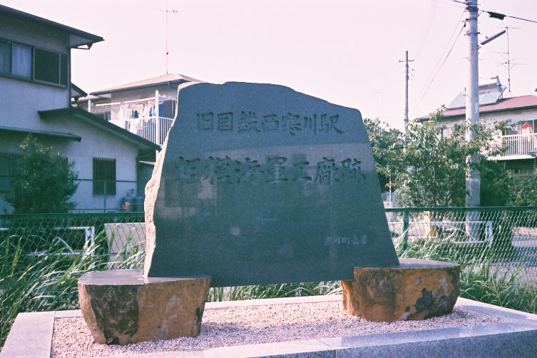 人生初めての廃線探訪で数々の遺構を発見しているうち、やがて終点が近づいてきた。西寒川駅跡だ。駅跡といってもただの空地がポツンとあるだけで、唯一そこに駅があったと伝えるモニュメントだけが、旧駅の場所を示していた。と同時に相模海軍工廠跡と併記されているが、工廠とは海軍の軍需工場とのことである。工場はどこにあったのだろう。というより西寒川駅の構内が想像つかない。鉄道駅の構内となればたとえ小規模でも長細い敷地になるものであり、ここの広場は小規模な学校のグラウンドよりも遥かに小さい塊状のような空地で、どう見ても鉄道の駅、それも終着駅の風情がまるで感じられなかった。