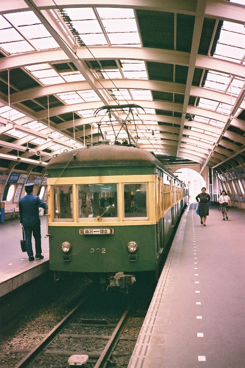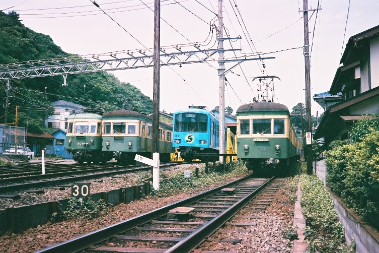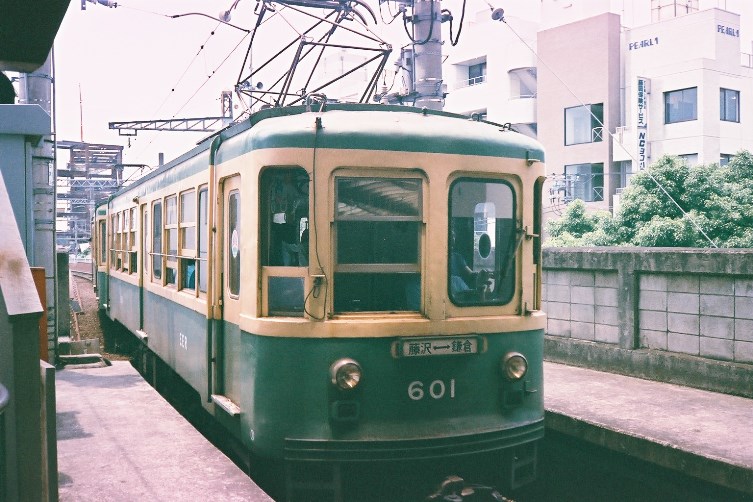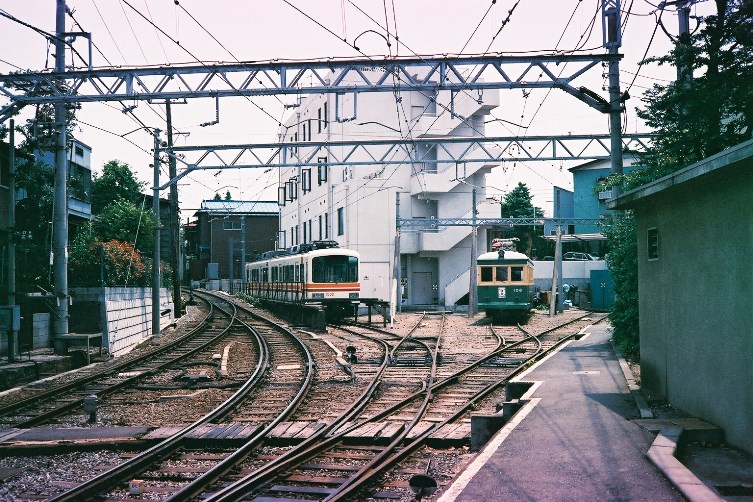 江ノ電江ノ島駅ですね。多分、T君と一緒に、フリー切符を使って江ノ電を撮影に来たと思われる。この江ノ島駅、構内の様子は現在でもほとんど変わっていないが、サンラインカラーの1000形、そしてこの時ですでに退役から10年近く経っている100形、タンコロが目を引く。タンコロはこの数年後、極楽寺にある検車区で専用の保管庫を与えられ、現在でも大切に動態保存として扱われている。
