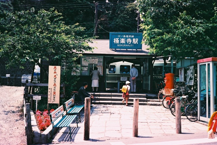 30年近く経った今でも佇まいのほとんど変わらない極楽寺駅。極楽寺トンネルで山を越えるため、江ノ電の中でも最も標高が高い。といっても海抜25m程度だが。ところでまた立て看板に注目だが、当時の駅にはよく青少年に見せたくない本、つまりエチエチな雑誌を捨てる専用のごみ箱が大体どの駅にもあった。白ポストと言ったっけ・・。よく子供心に、エッチな雑誌を買ったエッチなオヤヂが、使用し尽したとはいえ青少年に見せたくないがためにどうしてわざわざその「お宝」を手放すのだろうか? と疑問に思っていた。そして管理者でもあり回収の責を追う人物は、どういう顔でそれを回収するのだろうか? まさかリサイクルならぬ「リユース」するのでは・・・!? と想像していた。どうでもいい話をしてしまったが、しばらくこの極楽寺周辺を散策してみたんだと思う。