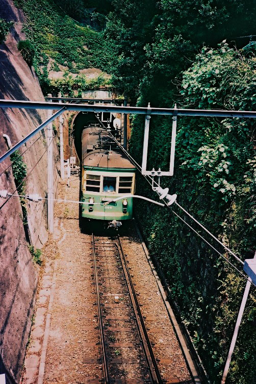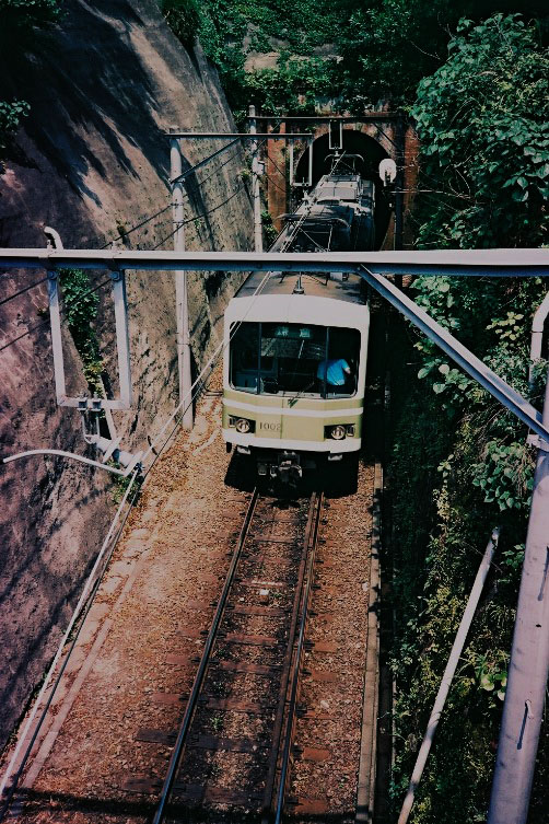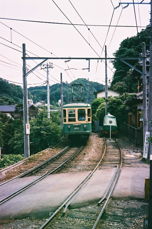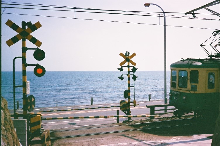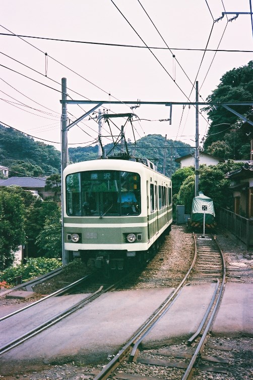 江ノ電唯一の極楽寺トンネルを抜ける列車たち。左の1000形は1979年、江ノ電50年ぶり、久々の新車ということで華々しくデビューしたのだが、なんとこの1980年代に新車として時代錯誤な吊り掛け駆動で登場したということは有名だ。ところでこちらも記憶には全然ないのだが、極楽寺下車後、この界隈をしばらくうろついて撮影していたようだ。