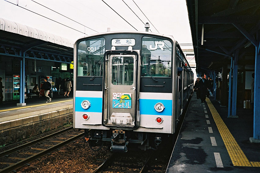 瀬戸大橋を渡り終えマリンライナーを坂出で降り、人生初の四国第一歩を印す。マリンライナーを見送り、まだ地上駅だった坂出駅ホームでやって来る列車たちを撮影した。