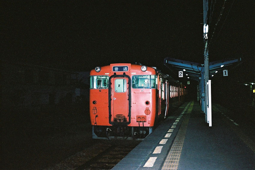 さて、今夜の宿となるのは当時残存していた四国島内夜行列車だ。高松を未明に出発。途中多度津で予讃線宇和島行き、土讃線窪川行きに分割され島内果てをめざすというロマンあふれる普通夜行列車だ。そのルーツはかつての予讃線ではキハ58による急行「宇和島」、土讃線は50系客車の221レ。いずれも宇高連絡船最終便に接続し、島内の県都を結んでいたのが、昨年頃より急行「宇和島」が格下げとなり、この普通列車9641Dとして毎日運転されることとなった。また同日に高松行きの客車列車もこの9641Dに併結する形で気動車化。さらに高知行きだったのが窪川まで延長されるという発展的解消で統合された。ところで列車番号からも分かるように「9」が付くことから臨時列車扱いであったものの毎日運転され、時刻表には「しばらくの間運転します」という注釈がついていたので、いずれ近いうちに廃止になると思われた。そして当時でも「普通」の夜行列車は珍しく、四国島内のこの列車の他に、今朝乗車した大垣夜行、新宿から中央東線を下る上諏訪夜行、紀勢本線の新宮夜行くらいだった。