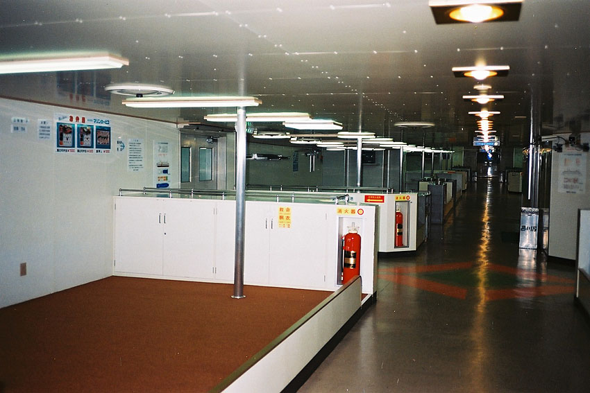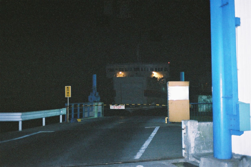 今夜の宿は現在でも運行されている南海フェリーの夜行便。当時は小松島港から出ていたので牟岐線に少し乗って南小松島で下車。かつては港のある小松島港まで本州連絡を目的とされた日本で一番短い国鉄路線である小松島線があったが、1984年に廃止。1kmちょっとの路線であったので徒歩でもあっという間に港に到着することができた。まだ出港まで時間があったためか、全く暖房が効いておらず凍える寒さの中、誰もいないフェリー待合室でひたすら時間を潰し、やがて和歌山からやって来てくれたフェリーに乗り込み1:30、小松島港を出港した。乗船したフェリーはまだ就航してからあまり経ってないらしく、客室設備が真新しく得した気分だ。またトラックなどの貨物はぼちぼちあるものの、一般客室の乗客は自分ただ一人だけだったのもとても嬉しい。そして芯まで冷え込んだ体に効きすぎるくらいの暖房も幸せだ。ほとんど一日中興奮して鉄道旅を満喫していたせいもあり、升席に横になると速攻で気を失ってしまった。