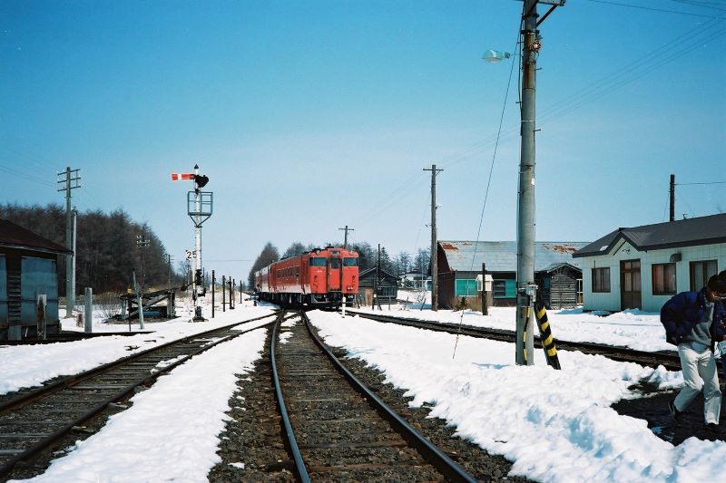 撮影場所の記録は残っていなかったが、本記事を記すにあたり調べると「西春別駅」であることが判明。標茶行きが入線してきた。