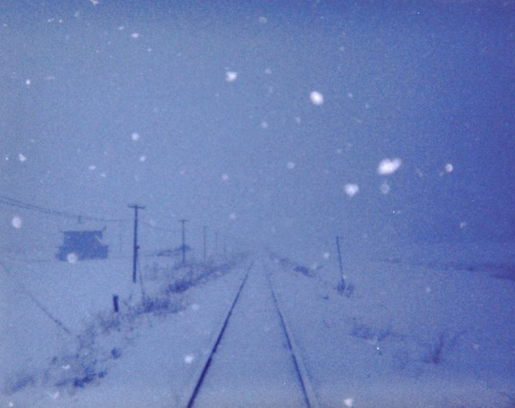 中湧別に到着すると、他の数人の旅人も降りた。記念に硬券の入場券を購入したあと駅舎から出ると少し雪が降っていたが、寒いものの特にしばれるほどの記憶は無かった。昔の天気概況を調べることができる気象庁の「過去の気象データ検索」のサイトから、この日この時間の気温を調べると0℃前後とのこと。さてストーブが焚かれ暖かい待合室を出、湧別方面へ歩き、駅から少し離れた踏切でいよいよ線路上を歩きだす。そう、あることとは支線の始発列車が来る前に線路上を歩いて湧別に向かい、やって来た始発の1番列車で中湧別に戻るという計画だ。今やったら大問題だが、当時は地方に行くと、地域住民が当たり前のように線路上を生活道路として使っていて、無人駅などで降りた乗客は列車がまだ見えていても、普通に線路に降りて家路に就く光景がよく見られた。中にはトンネルや橋梁も渡っているお年寄りも目撃したことがあったので、全く抵抗とか後ろめたさは無かった。