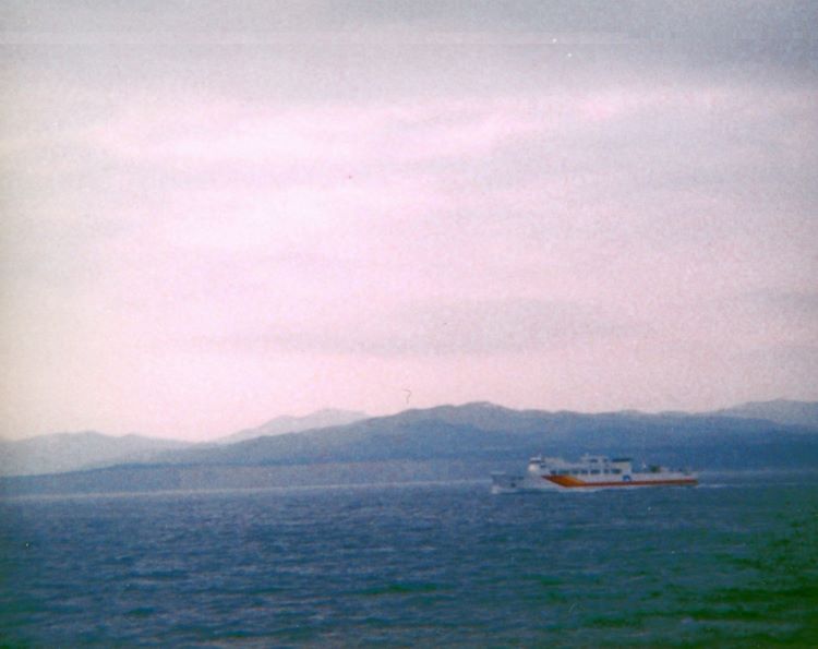 出航時デッキから。くたびれた船内は常に油の臭いが漂っていた。