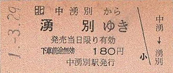 稚内から夜通し走り続けてきた急行「利尻」は6時ちょうど、札幌駅に到着。今辿ってきたルートを逆行すべく特急「オホーツク1号」に乗り込む。道中ほとんど覚えていないが、終着網走の手前、北見で下車した。11:36だった。北見でも接続待ちのため待合室で空腹を忘れるため読書に集中。1時間半ほど時間を潰すと、地北線の改札が始まったと放送が入り、すぐにホームに上がると各ドアの前にはすでに長蛇の列ができていた。これから始まるのは140km、3時間20分の旅。ほとんどがお別れ乗車のように見受けられ、自分と同じように終点の池田まで乗り通すのだろう。立席だけはゴメンだ。ドアが開き一斉に車内へ突入すると、先客の一人のマニア氏がボックス席1つを大量の荷物で占拠しているところだった。他を探そうにもその間に座席が埋まってしまう可能性があり、勇気を出して「スイマセン、一つ開けてもらっていいスか?」と尋ねると、あからさまにイヤな顔と舌打ちをされ、進行方向反対側の、しかも通路側を空けてくれた。さらにもう一度「窓際、いいスか?」というと渋々無言で荷物を動かしてくれ、何とか景色を見られる席を確保することができた。13:28 池田行き934D出発。車内は立ち客が大勢いる中で、そのマニア氏は3つの座席を体と荷物で占領しているが、そんなことは周囲の人には分るはずもなく、自身の荷物と思われているのだろうと想像し、周囲の冷たい視線が痛すぎる。その荷物、何が入っているのかパンパンにふくれた巨大なボストンバック。それと手提げの紙袋4つほど。そして極めつけは何故、鉄道旅行に必要なのか理解不能なドでかいラジカセ。あの・・分かります?カセットテープを2つ入れることができてCDも聞けて左右に大きなスピーカーがある黒い筐体。単一乾電池を6本くらい使うヤツで「ドデカホーン」といってピント来た方は40代以上でしょうか。そんなこんなで列車は北見平野を進み、山間へと突入する。ここまで大き目な集落の駅を過ぎても、ほとんど下車する乗客は無く、相変わらず横に立っている方達はこちらを睨んでいるような気がするので、いつものように眠くなることが無い一方、景色があまり脳に入ってこなかった。途中いくつかの駅で10分程度の交換のための停車があり、乗客たちのほとんどは写真撮影や下車印収集のために列車を降りる。向かいの座席占拠マニア氏も同様に席を外すので、自分も唯一の手荷物であるリュックに場所取りをさせて下車印や入場券などを手に入れた。しかしこの後の旅程を考えてフィルムの消費を押さえようと、この地北線の画像は一切残っておらず、たった一つ、地北線に乗車した証として手元にあるのは陸別駅の入場券だけだった。