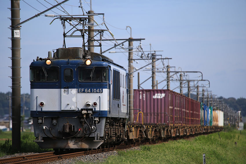 翌朝、さすがに2連休を無駄にするのは勿体なさすぎるので、近場のネタ探しに取り掛かり始めるとすぐ、愛知機関区のEF641037国鉄色が鹿島貨物に就きそうとのこと。早速出発した。首都高、東関東道を抜けて初訪問である大戸〜下総神崎に到着。かなり余裕を持ってきたつもりだったが、圏央道に入るところを間違えて東関東道を直進してしまい時間を大幅にロス。しかしもともと早めの出発だったので、狙うべき1094レ通過30分前に到着することができた。見事な光線具合と遥かなる直線区間。ロケーションとしては普通だったが、築堤の雑草は誰かの手によって見事にガーデニングされていて、スコーンと長大編成を見通せそうだ。先客1名、後から1名。計3名で1094レの到着を今は遅しと待ちわびた。