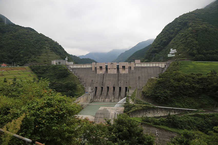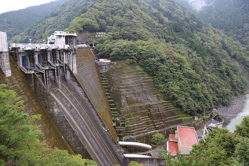 長島ダム。このダム建設のため標高を稼ぐ目的でアプト式が採用された。(車内から)