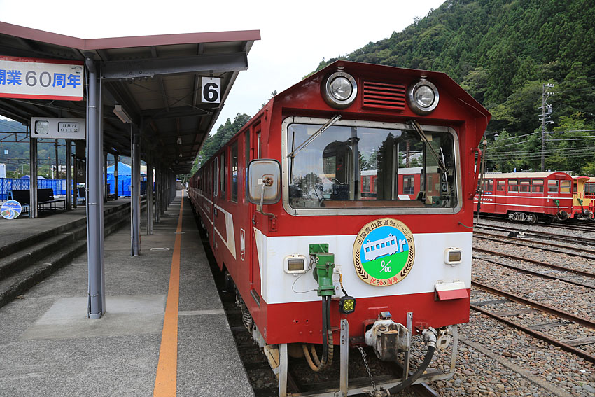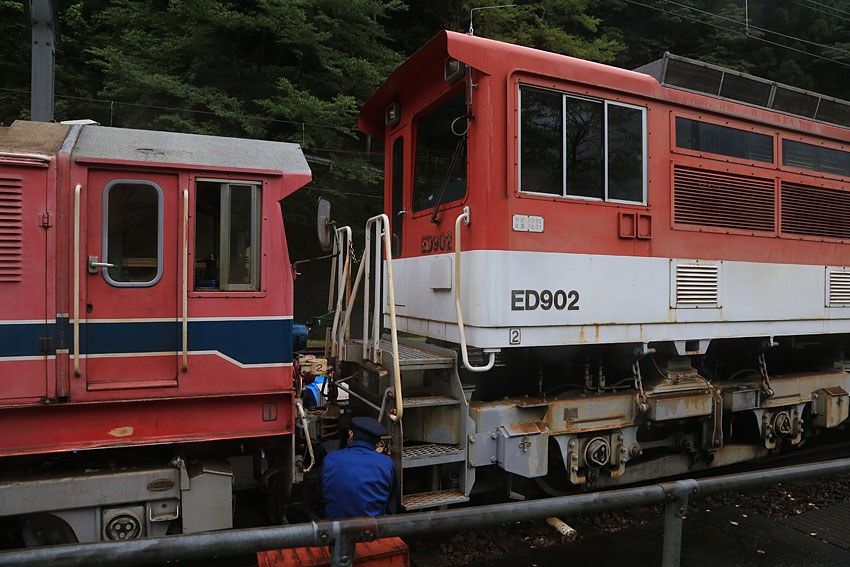 アプト区間を登り切って長島ダム駅に到着。ここで電気機関車を切り離す。