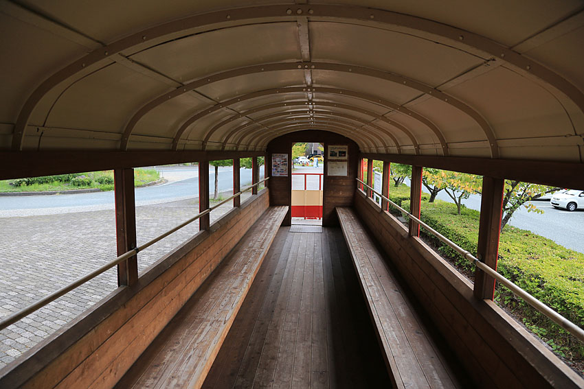 道の駅に保存されているかつて活躍したオープンデッキの客車。