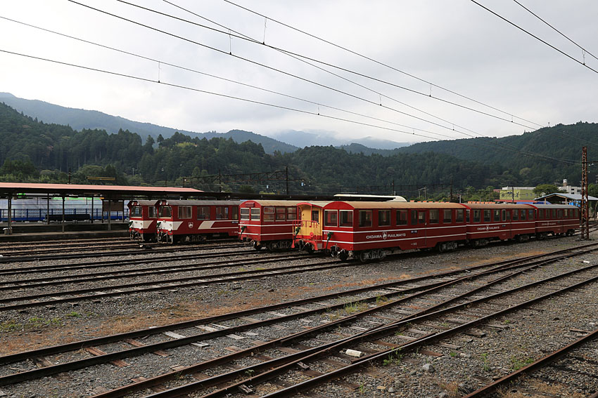 井川方の制御客車が後部の機関車を操る。急勾配に備えたためである。