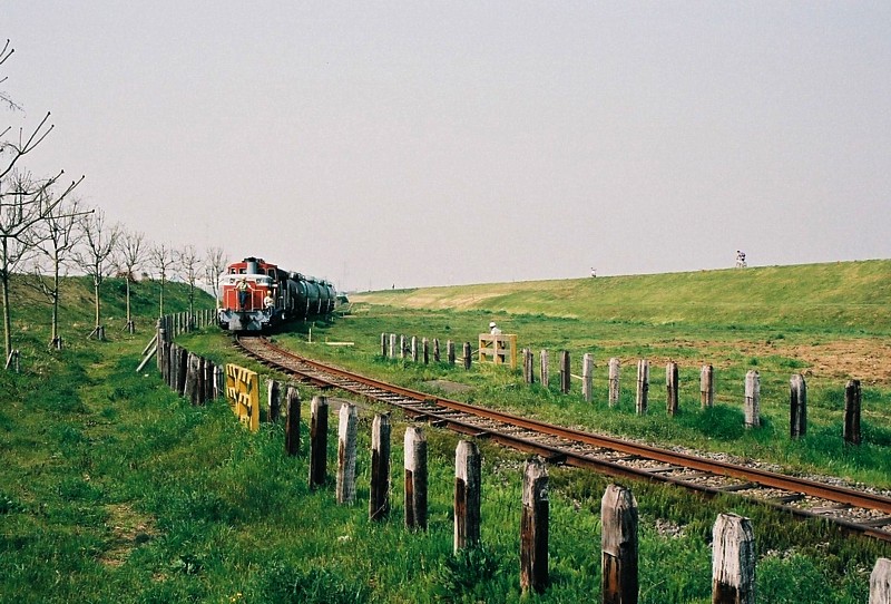 なんとも牧歌的なこの専用線も1998年頃突然廃止されてしまった。線路が剥がされるとすぐに堤防の工事が行われ、現役時代の面影はあっという間に埋め尽くされ、古き良き時代の光景がまた一つ過去のものになってしまった。