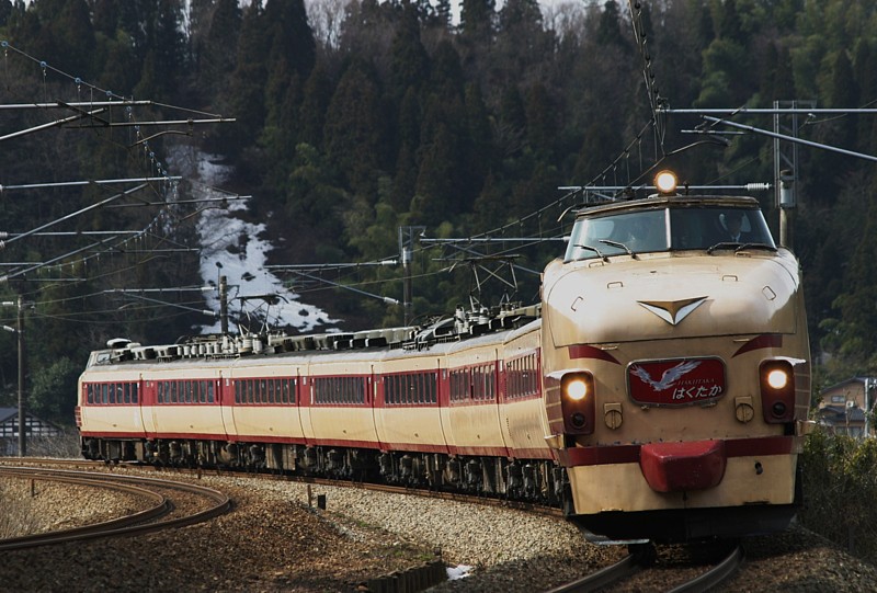 はくたか84号。晴れたら最高なんだろうな!? リベンジは今も果たせず、ボンネット「はくたか」は神出鬼没の代走運用のみになってしまった。