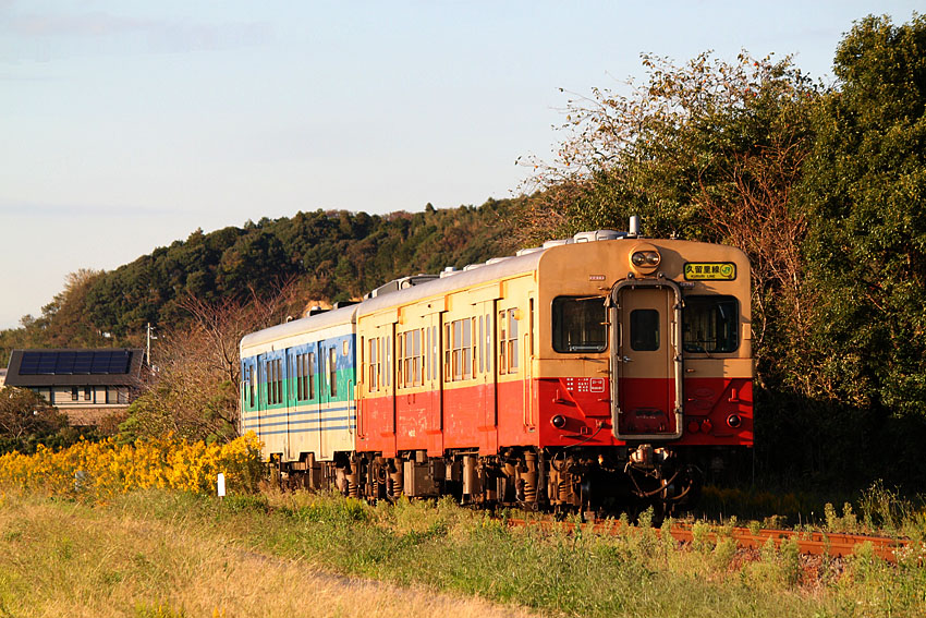 というわけでお目当ての画像が残せて万感たる思いだった。こうしてこの日は満足して帰宅したが、沿線の秋の気配が深まるにつれて、一般色でなくとも、全車両、国鉄型の完全置き換えがうわさされている時期でもあったので、その他の久留里色の形式も記録に残しておこうと、以前に増して久留里線通いは増えていった。