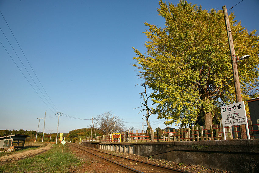 そしてお気に入りの場所がもう一つ。久留里から一つ奥に行った平山駅である。なんてことの無い1面1線の無人駅だが、春には桜、秋には駅前の大銀杏の古木がこの小さな駅に季節の彩を添えていた。