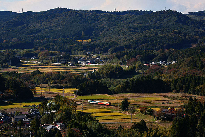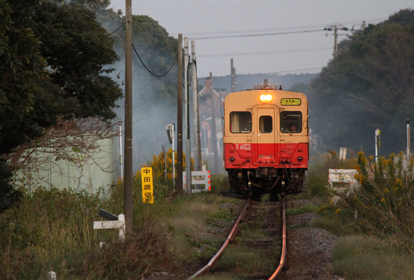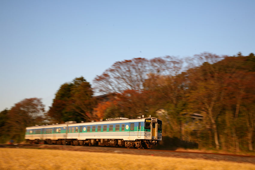 月2ペースかそれ以上で久留里線へ撮影に出かけていたのだが、秋ならではの光線状態が作り出す光のマジックで、夏にはなんてことのなかった撮影地が、とても魅力的に思えたりもして、訪問する度に次回の作戦を立てて、実行に移すということがパターン化していった。そして夕刻の情景を撮影し終わると急激に冷え込む気温。凍えた体で東京湾を渡り、地元のスーパー銭湯でひとっ風呂というのも定番の楽しみにもなっていた。