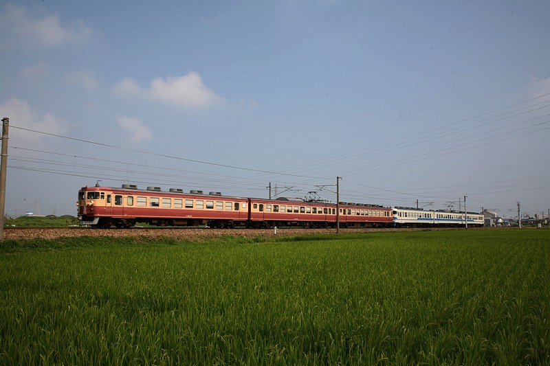 本日の国鉄急行色コンビはA5運用=午前中羽前椿折り返しなので宇津峠を越え置賜盆地へ。曇ってしまったため椿往復は何となくレンズを向けただけで終了。再び峠を越え新潟県側に入った。