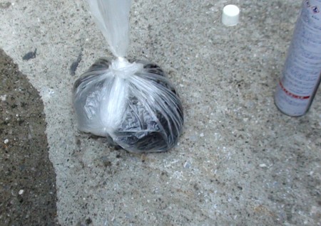 廃油処理パックもいいのだが、自分はいつもコレ。バケツに水を張りごみ袋を装着。