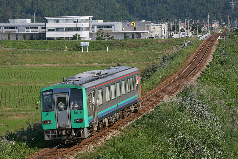 翌朝、近くのICで高速を降り、まだ朝のラッシュが残る混雑した県道を撮影地へ。過去何度も来たことのある婦中鵜坂の陸橋にやってきた。列車通過1時間ほど前に到着。空は一面の快晴で秋風が心地よい。バイクで来ればよかったと後悔しながらもセッティングし、後ろを行き交うクルマも気にせずワンセグをみながら時間をつぶした。しばらくして普通853Dが通過。あと30分で1090レがやってくる。するとどこからともなく1人の同じく貨物狙いの青年が陸橋下から歩いて登ってきた。「おはようございまーす!」とこちらから挨拶すると「・・・あ、ハイ」みたいな感じでつれない素振り。まぁいいやとファインダーで最終調整をしていると、遠くから紫煙を吐きながらDE10がゆっくり近づいてきた。件の青年を一瞥すると携帯をいじくっていて気が付かない様子。自分はビデオもスタートさせているので彼に近づき「来ましたよ!」と小声で教えてあげると、「・・・あっ・・・」とレンズを線路方に向けた。ゆっくり築堤を登って足元のカーブを右にクイッと機関車が顔を向けた瞬間を切り取ることができた。全くの快晴。国鉄色。しかも荷だくさん。うんうん、来てよかった・・・。