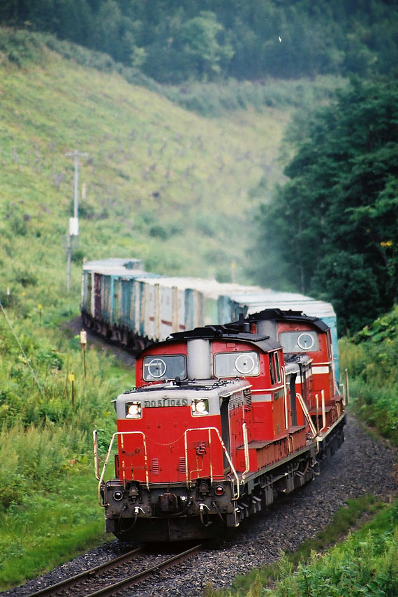 キハ183をこのアングルで撮影したかった。金華からの連続勾配をあえぎながら登って来た上り貨物。数年後にプッシュプルになるが、当時は大迫力のDD51重連だった。