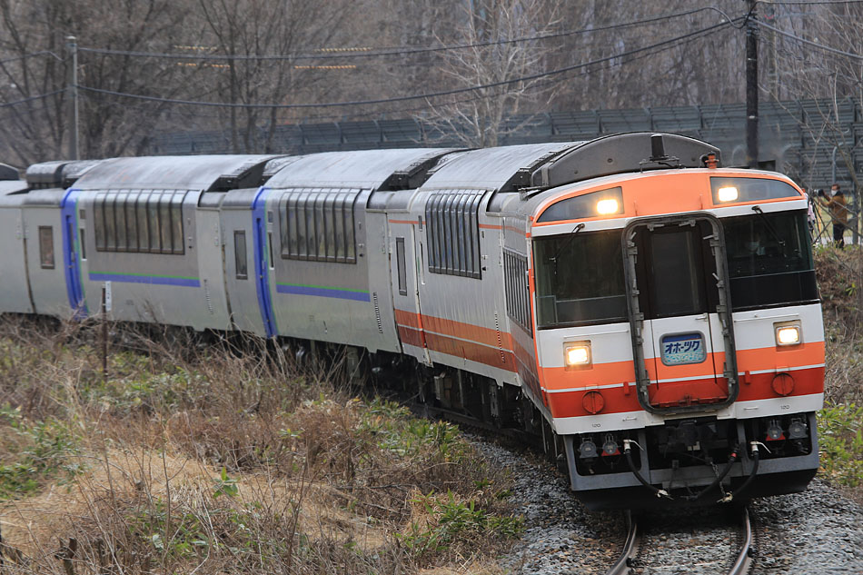 そんな訳で出発を決めた今回の目的はキハ183ラストラン撮影。先月ダイヤ改正で定期運用を終えたキハ183は、翌週末、特急「北斗」「ニセコ」として函館を往復。さらにその翌週末「サロベツ」として稚内往復。そして最後の週末は「オホーツク」で網走まで往復するイベントに充てられる。また充当する編成は、引退記念として昨年復刻された登場時の国鉄色(といっても国鉄期間は半年程度だったが)の先頭車(キハ183-8565)とハイデッカーグリーン車(キロ182-504)の2両とHET色を組み込んだ5両編成で、さらに最終の「オホーツク」はハイデッカーを3両つなげてのラストランになるという。