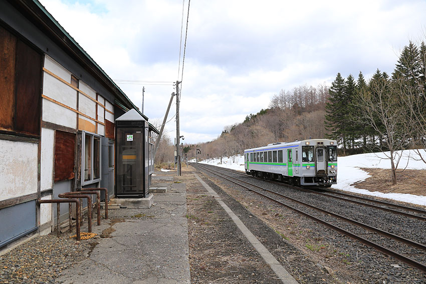 自分の中ではキハ54で来るものだと思い込んでいた「きたみ」は、よくわからない新しそうな軽快気動車で通過していった。ボックス席には乗客が1〜2名程度と盛況なようだ。しかしこの記事を執筆するにあたり石北本線の輸送状況を知ると、1日4往復あったと思っていた特急はいつの間にか2往復に、そしてこの特快と件の普通列車の合計4往復しか残っていないそうだ。並行する全線無料の高規格道路も延伸し、ますます経営は想像以上に厳しいと思われ、JRもこの石北本線を単独維持困難と挙げている。ここだけではないが10年後は予想もつかない状況になっていることであろう。