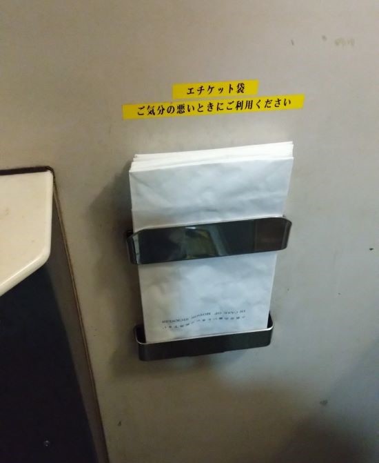 有名な「やくも」ならではの装備。かつては全席にあったんだとか。使用済みはどうするんだろう?