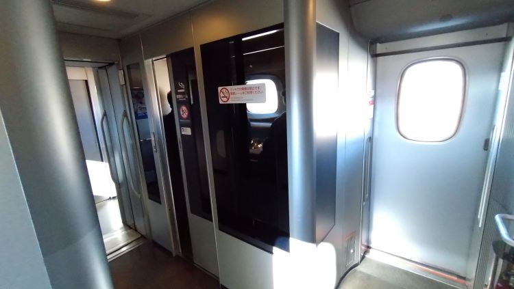 6:51 のぞみ5号、新横浜出発。今日の目的地へは新幹線から在来特急に乗らなければならず、この在来特急の乗車も、撮影に次ぎこの旅の第2の目的でもあったため、乗り換え駅までしっかり寝ておこう。隣りの窓際の座席に隣人は現れなかったので、名古屋までE席に移動させてもらう。市街を抜け相模平野に入りすぐにトップスピードの285km/hで快走する車窓から朝焼けの丹沢山地を眺めていると、久しぶりの東海道新幹線に興奮してしまい、寝ておかなければならないはずが、ギンギンに目が冴えてしまった。そして冴えてしまったついでにもう一つやっておくことが出来た。本日乗り合わせた列車は「700A」。700Aには来年春に廃止が決定している喫煙ルームを備えているのだ。来春以降、国内で列車内で喫煙ができるのは、自身生涯乗らないであろうサンライズか一部の近鉄特急のみとなり、貴重な体験ができるのだ。早速10号車の喫煙ルームに移動すると、順番待ちが2名。室内の定員は3名なので少し待つことにした。