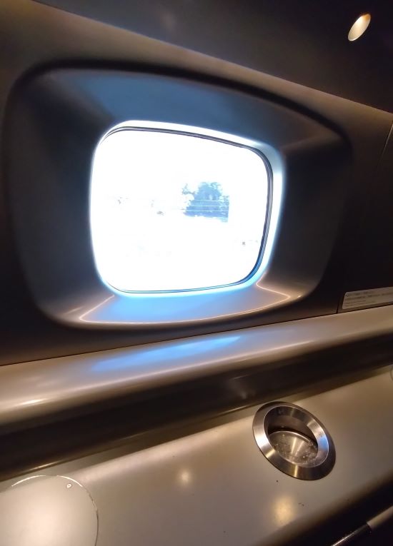 中央に小窓が一つ。数年前までは灰皿は3つあったと思うが、両サイドは塞がれていた。
