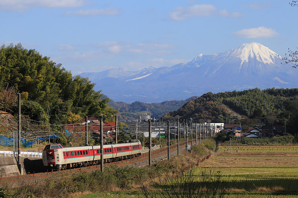 また課題が出来てしまったようだ。気候の荒い冬の日本海側。来春の引退まで何回チャンスがあるのか、自分はそれに立ち会えることができるのか。意気消沈しながらも一応撮影はしておこうと、暗くなったファインダーを覗きながら露出を変更。試し切りしても当たり前だが、線路に合わせると晴れの領域にある大山は白飛びしてしまうしどうしようもない。幾人の撮影者から舌打ちが聞こえた。奥の踏切付近はまだ日が当たっているように見え、なぜこんなピンポイントで神は意地悪をするのか恨めしく思ったその時! その日当がこちらに接近しているように見えた。幻か!? 本来であればすでに狙うべき9号は通過している時刻。でもまだ姿は現さない。徐々に近づく晴れの領域。やくもよ、まだ来るな!まだ来るな! 恨んでしまった神に贖罪することを誓い、一同は必死に天に祈りを捧げた。その結果・・・