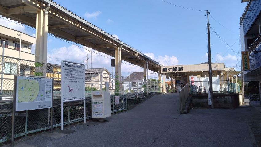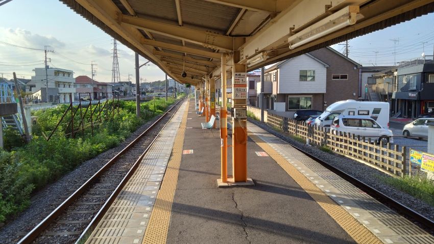 よかったよかった1本見送って。次の電車に乗って2駅進み、鰭ヶ崎(ひれがさき)というイカつい名前の駅で降りた。一面一線の駅だが、ちゃんと駅員さんがいて着発時の安全確認を毎回行っている。撮影は後にしてひとまずオアシスに移動しよう。駅からすぐのところのコンビニで500mlと一本摂取。力がみなぎって来たところで、もう一つの駅に行ってみよう。