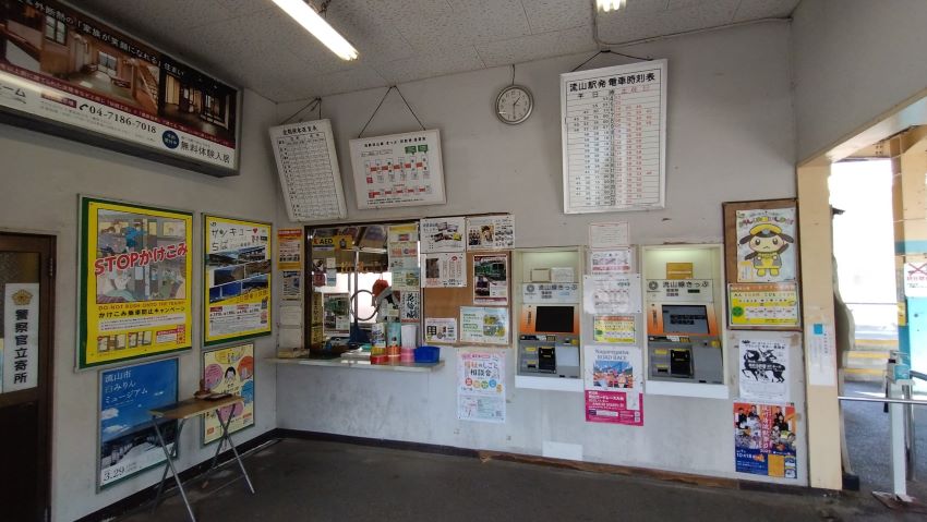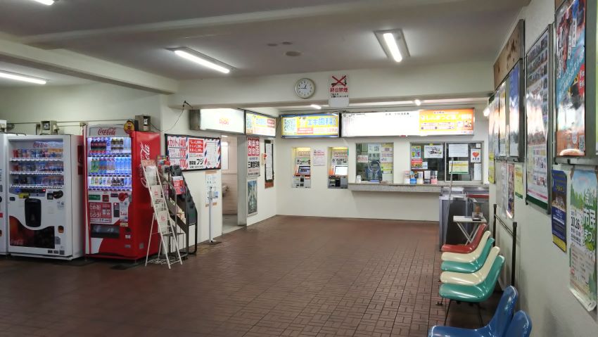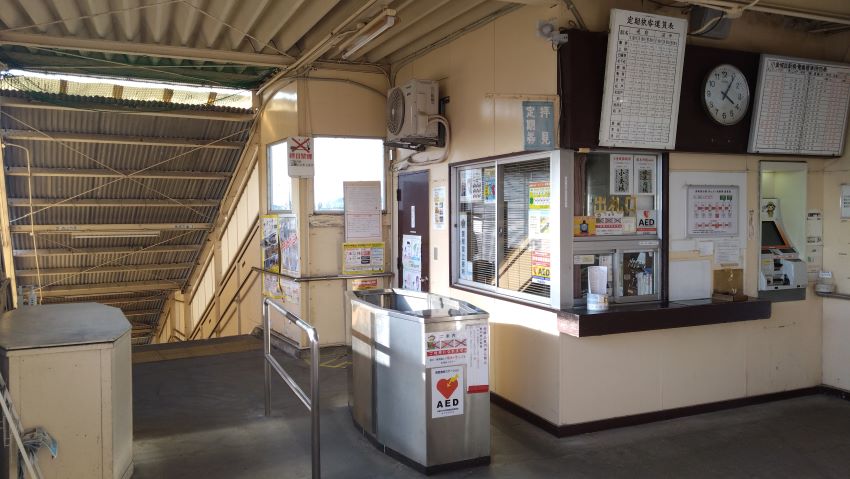 簡素な待合室と切符自販機。それと活きている出札口。有人駅のようだ。