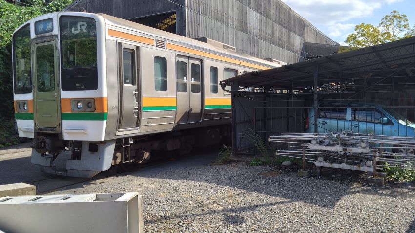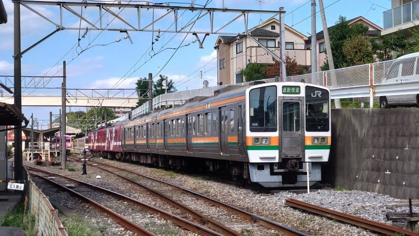 そういえば今回の目的を話してなかった。ご存知の方も多いと思うが、流鉄では主力車両として活躍してきた元西武の車両の老朽化により、JR東海から廃車になった211系電車を2両×4本を譲渡され、置き換えを図るとのこと。JRと流鉄は馬橋で線路が繋がっているため、静岡から甲種輸送で運ばれてきた211を流鉄線内に搬入する様子が動画サイトなどで話題となった。搬入された211系は現在終点流山駅構内の車庫で改造を待っている状態であるらしく、それを撮影、いや見学に訪れたのだ。嘆かわしいことに日本各地の中小私鉄は、昭和から続く歴史ある自社のアイデンティティであるオリジナルカラーに早々に見切りをつけ、奇抜な塗色で心機一転出直しを図る傾向が散見され、ここ流鉄もすでに平成初期には統一感のまるでないド派手な塗色に変更している。今回譲渡された211系はステンレス車なので塗色変更は無くとも、湘南色の帯は取り換えられると思われる。そう、搬入されたままの流鉄211系は現在、