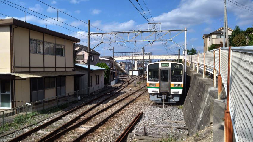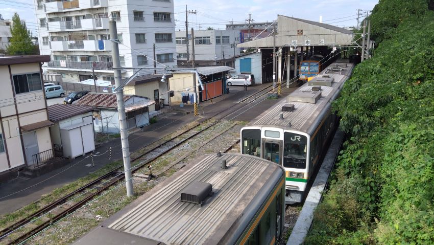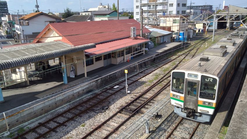 次に降りたのは線内唯一の交換可能駅である小金城趾。島式二線、唯一の橋上駅舎だ。小っちゃい改札と小っちゃい出札口。こんな駅でも有人だ。利用者にとっては安心感があるだろう。橋上駅舎から住宅地へつながる跨線橋で上下の列車を待ってみた。気持ち悪いとか呼んでいた電車たちも211系がここでデビューすれば引退する運命なのだろうから記念に撮影しておこうと思う。
